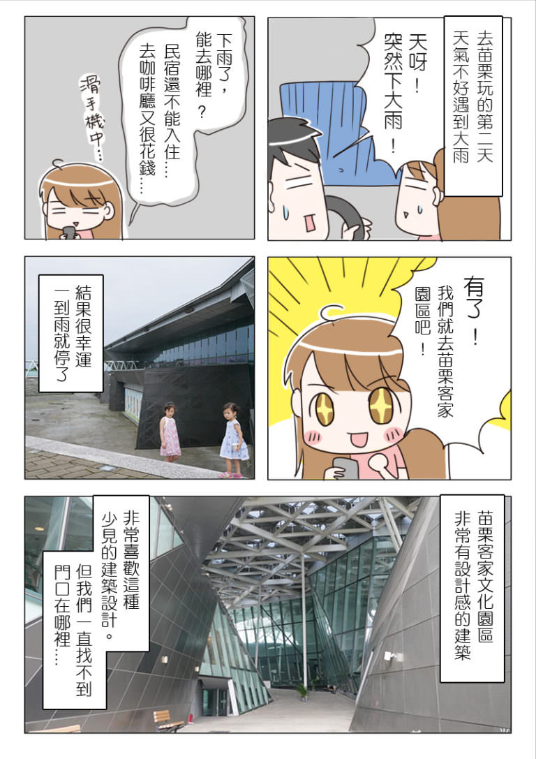 突然碰到大雨,不知道還可以去哪裡,用手機查abic的網址發現苗栗也有一個『客家文化園區』,看似是一個方便躲雨的好地方,不多說就開車過去!