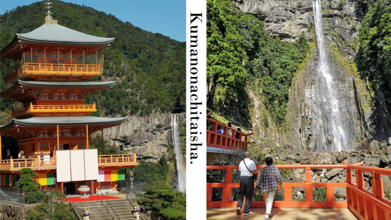 ▼和歌山熊野代表性的美景-三重塔與瀑布