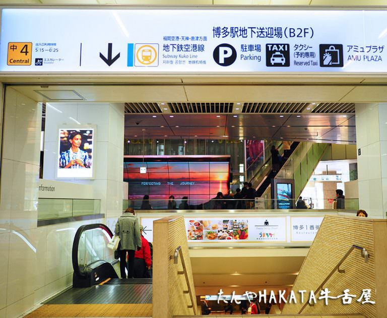 位在博多車站B1的博多一番街,博多一番街在哪裡?具體詳細位置就在博多車站一樓全家附近,就會看到這個手扶梯,往B1的方向去就對了!或是找地下鐵空港線的入口也可以。