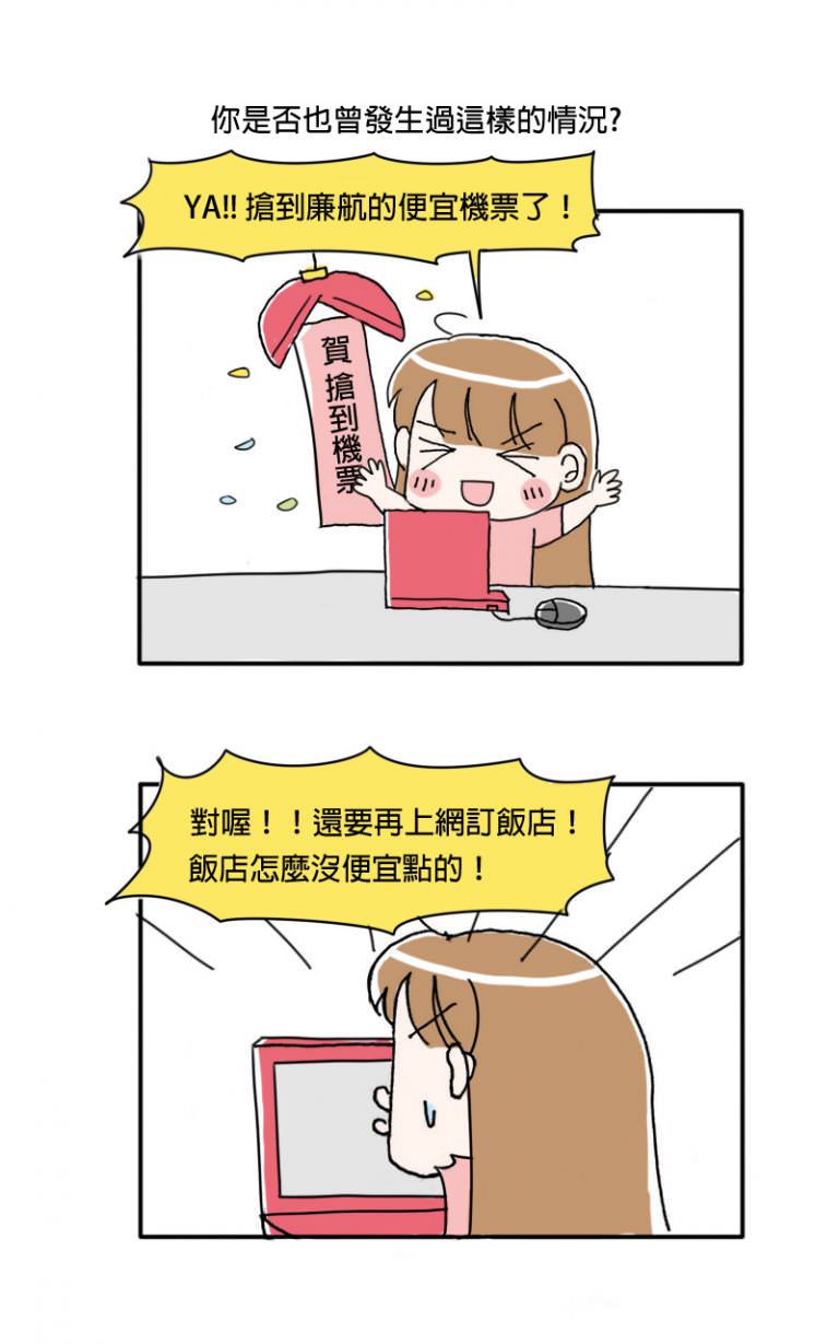 不過通常買到了廉價航空的機票後,就要準備再另找飯店,其實有很多旅遊平台像是Expedia ,這種全球最大的旅遊平台,有時就會促銷機+酒的優惠,算下來比單買廉航還優惠喔! 😆
