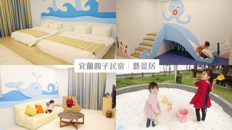 :宜蘭的藝景居民宿也是一家有名的親子民宿,這裡不僅有溜滑梯房間,而且房間超大!夏天還有兒童戲水池、電動汽車,離羅東夜市也僅有十分鐘的車程,算是交通便利,是家評價還不錯的親子民宿,家中有小孩的很推薦來這裡住一晚喔!